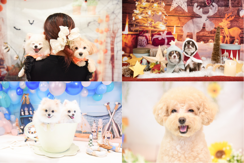 - 季節ごとの背景&小物でワンちゃんをよりかわいく演出♪